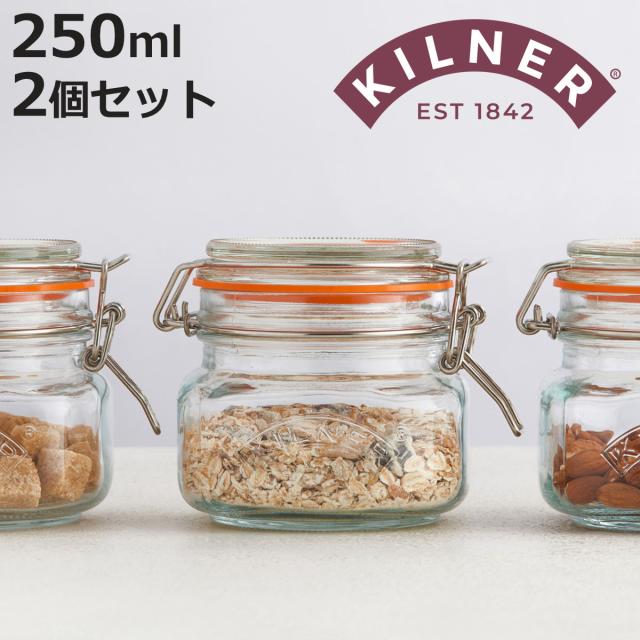 保存瓶 KILNER 2個セット 250ml Clip Top Square Jar ( キルナー ガラス瓶 ガラス保存瓶 ガラス 密閉 食洗機対応 保存 瓶 クリップトップスクエアジャー パッキン付き ガラス容器 四角 食品 ジャム 調味料 )