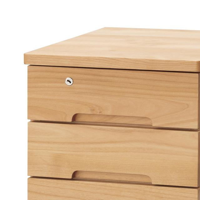 デスクワゴン キャスター付 3段 スリムタイプ 幅33.1cm 学習机用 共通袖 薄型 ( 鍵付き 引き出し デスク横 ワゴン 学習ワゴン サイドワゴン 無垢 日本製 木目 リビング学習 リビング 北欧 ナチュラル 木製 )