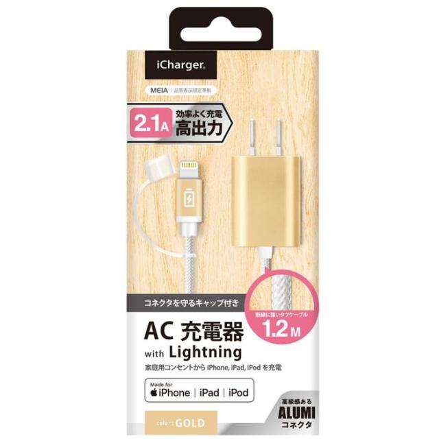 LightningコネクタAC充電器タフケーブルタイプ 2.1A ゴールド PGA PG-LAC21A23GD