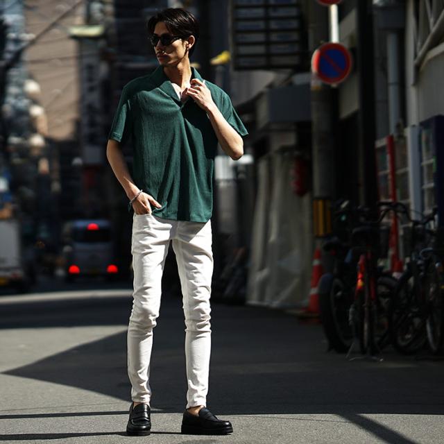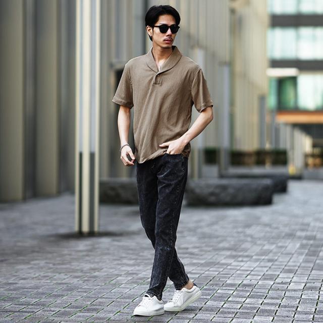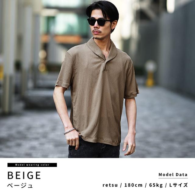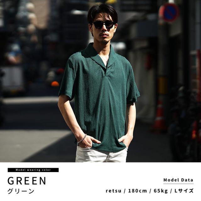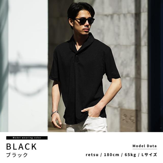 半袖ポロシャツ メンズ ショールカラー ポロシャツ メンズ シャツ メンズ 半袖 シャツ スキッパーシャツ 5分袖 ポロ リゾート 黒 ブラック ベージュ グリーン 薄手 薄い 涼しい 冷房対策 LL XL 夏 夏服 夏物 春夏 メンズファッション リゾート ちょいワル お兄系