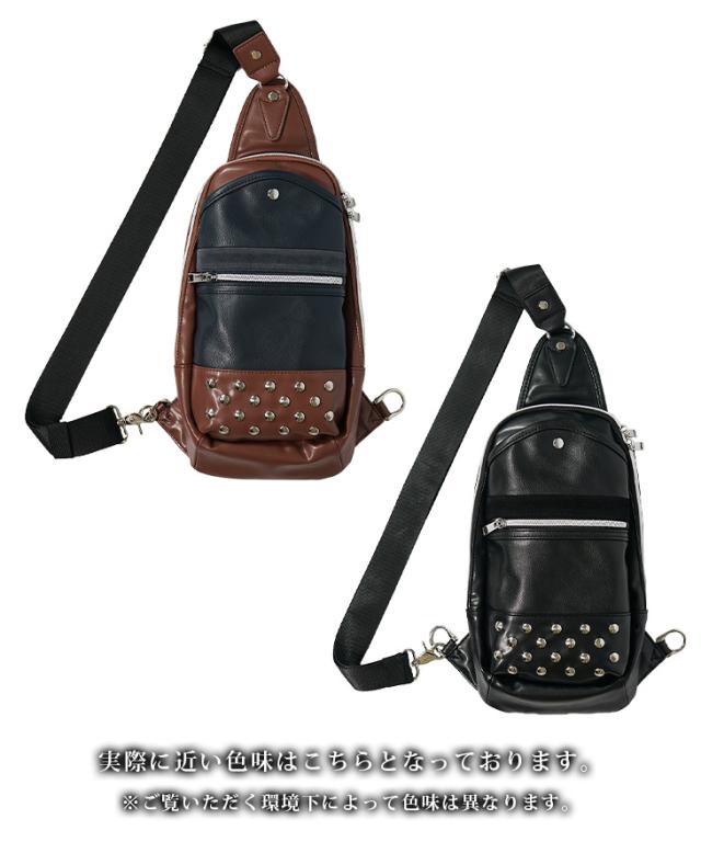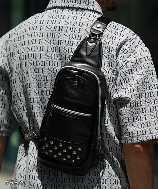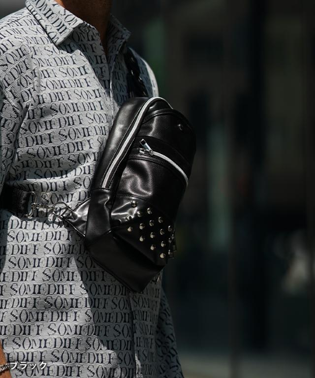 【スタッズボディーバッグ】高級感のあるPUレザーと無骨なスタッズデザインが