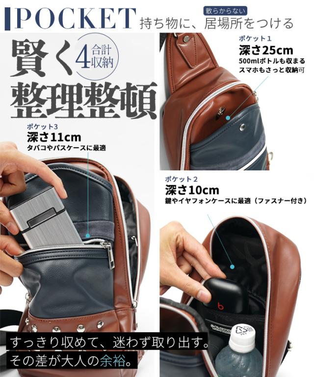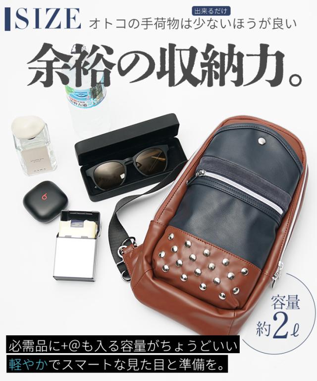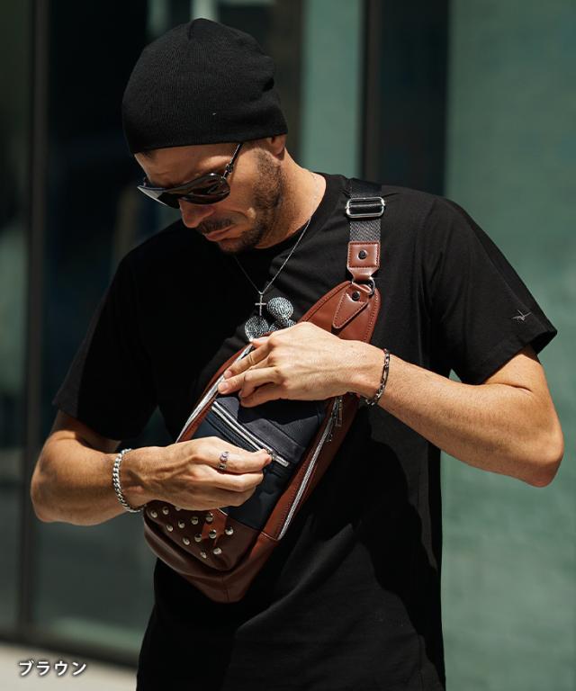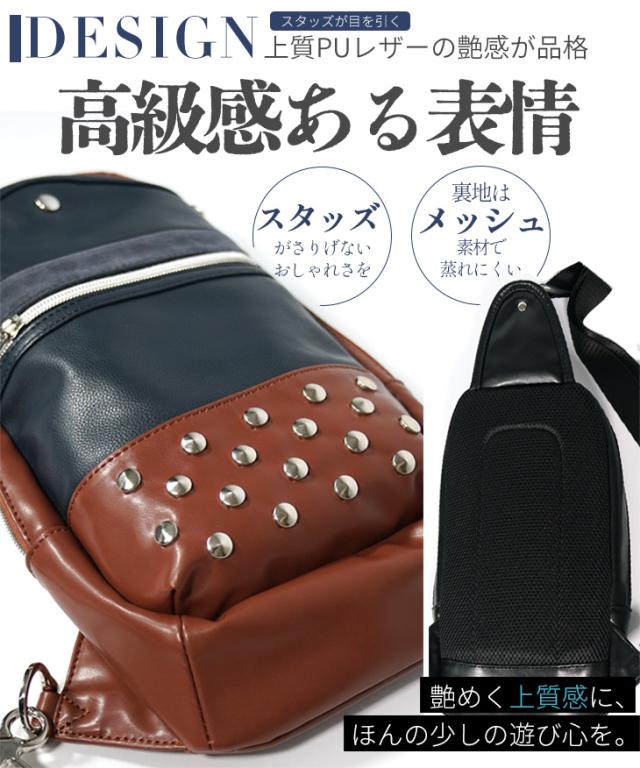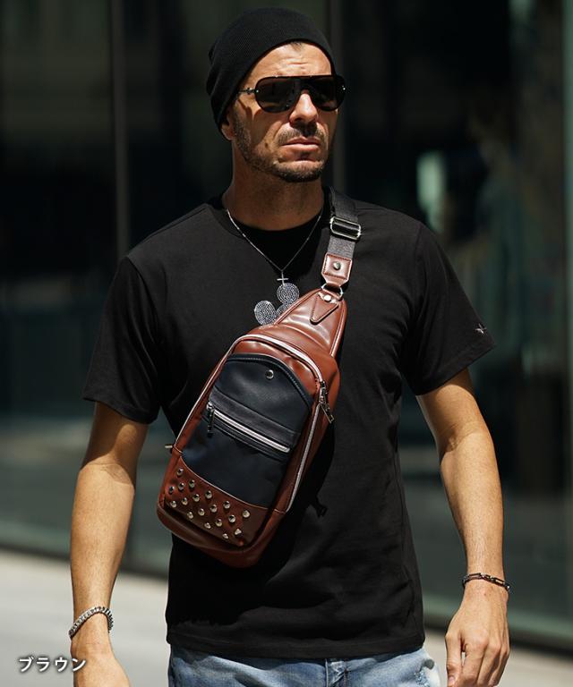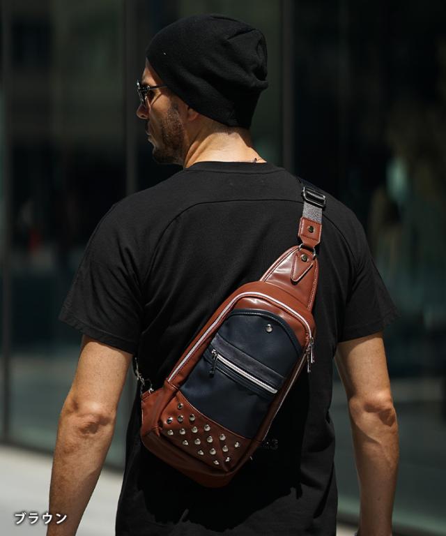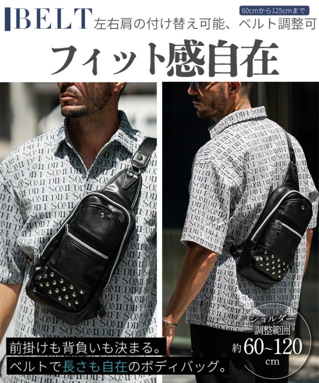 ボディバッグ メンズ ブランド PU レザー ボディーバッグ コンパクト 小さめ スタッズ バッグ 大容量 ウエストポーチ ウエストバッグ 斜めがけ スマホポーチ ショルダーバッグ 鞄 かばん カバン 小型 ミニバッグ ちょいワル joker ジョーカー 新作