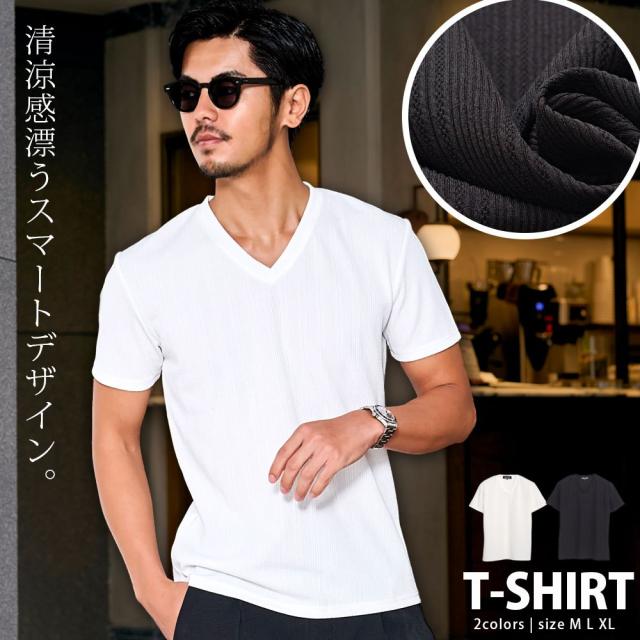 Tシャツ 半袖 メンズ Vネック Tシャツ テレコ素材 ストライプ柄 カットソー 無地 シンプル タイト キレイめ インナー 伸縮性 ストレッチ ホワイト ブラック 定番 白T 白Tシャツ CavariA 20代 30代 40代 ユニセックス 男性 男 服 春 春服 ファッション メンズカジュアル 東京 プレゼント 誕生日 記念日 贈り物 ギフト配送について