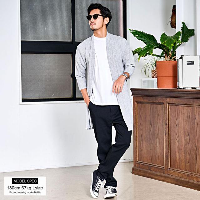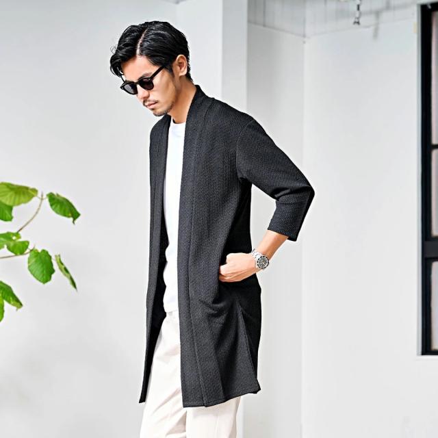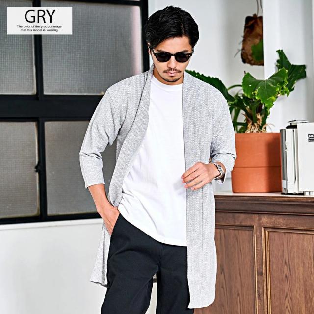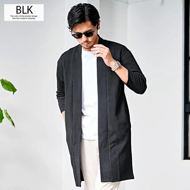 カーディガン メンズ ブランド ガウン アウター 7分丈 7分袖 七分丈 七分袖 ロング丈 シンプル ジャガード 無地 大人 ホワイト ブラック 白 黒 M L XL CavariA 20代 30代 40代 ユニセックス 男性 男 服 春 春服 夏 夏服 ファッション [CAST25-12]