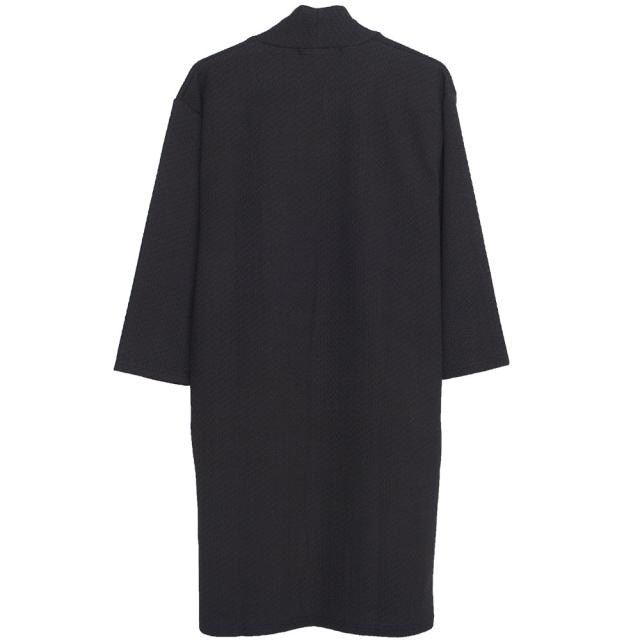 フロントのボタンがなくすっきりとしたデザインとリラックス感のあるガウンタイプのカーディガン。