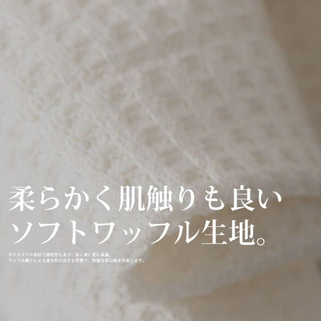 ワッフル織りによる通気性の良さも特徴で、快適な着心地を実現します。