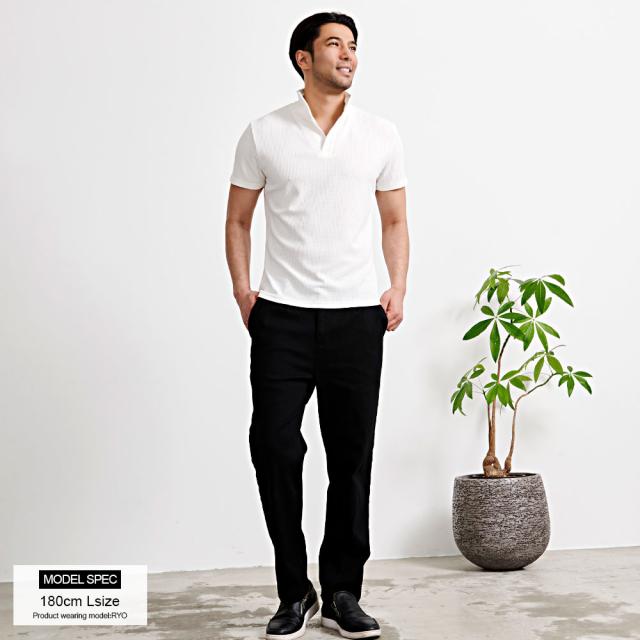襟元が開いたスキッパータイプのポロシャツなので首元をスッキリと綺麗に見せてくれます。