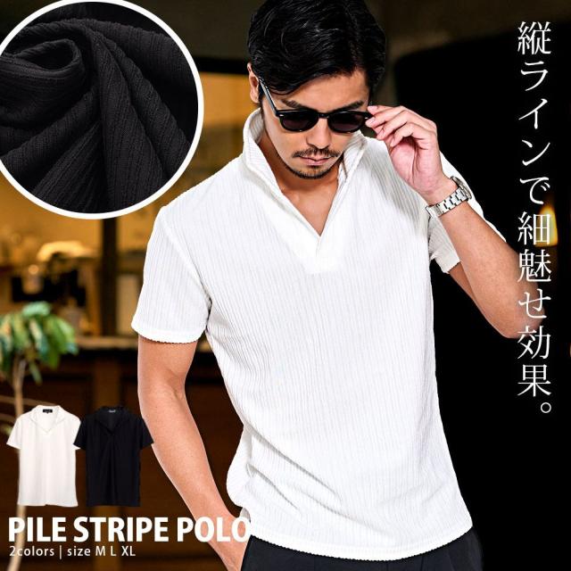 ポロシャツ メンズ 半袖 ブランド 半袖ポロシャツ パイルストライプ 細身 タイト 上品 スキッパーポロ ゴルフ ゴルフウェア ゴルフウエア ゴルフ用品 シンプル 大人 無地 CavariA M L XL 20代 30代 40代 ユニセックス 男性 男 服 春 春服 夏 夏服 ファッション [CAST25-08]