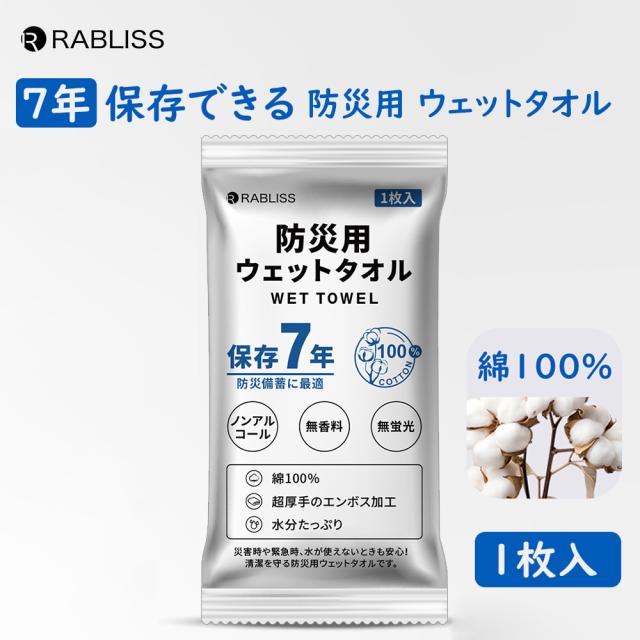防災グッズ 7年保存 防災用ウェットタオル 1枚入 1個 【メール便15個まで】 ウェットタオル 衛生用品 綿100% ノンアルコール 長期保存 厚手 清潔 断水 KO387