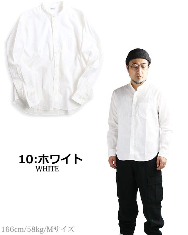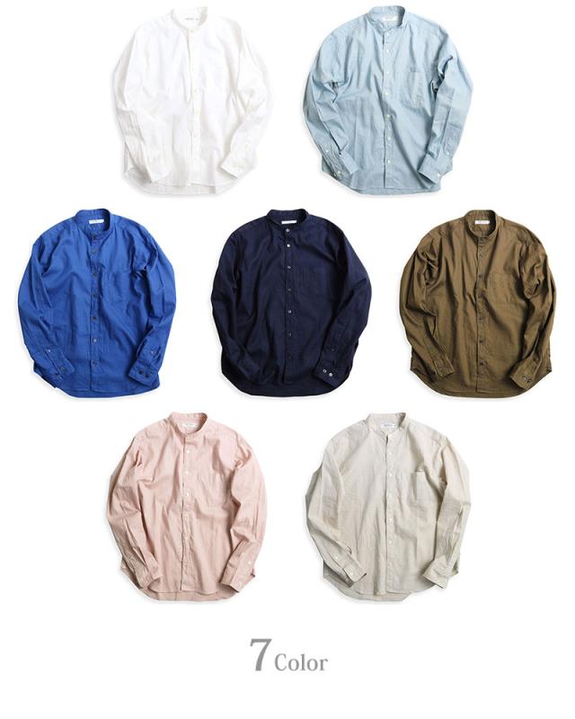 スッキリとした首元がリラックスして着用できるバンドカラー!