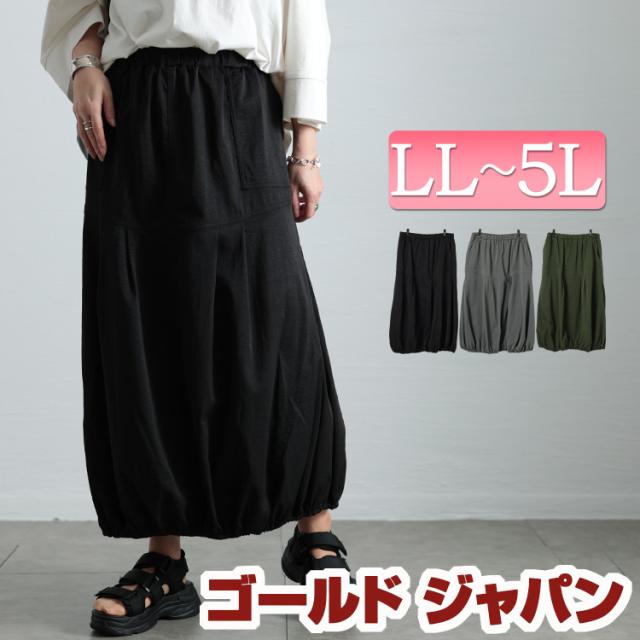 春新作 大きいサイズ レディース スカート ボトムス 切り替えタックバルーンスカート ロングスカート バルーンスカート ロング バルーン コクーン タック ポケット ストレッチ 伸縮 春服 夏服 秋服 冬服 LL 2L 3L 4L 5L ブラック 黒 チャコール カーキ ゴールドジャパン