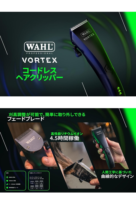 WAHL ウォール ボルテックス VORTEX バリカン コードレス ヘアクリッパー フェードブレード フェードカット プロ用 プロフェッショナル 業務用 正規品 送料無料 サロン品質 プロバリカン 家庭でも使えるプロフェッショナルツール