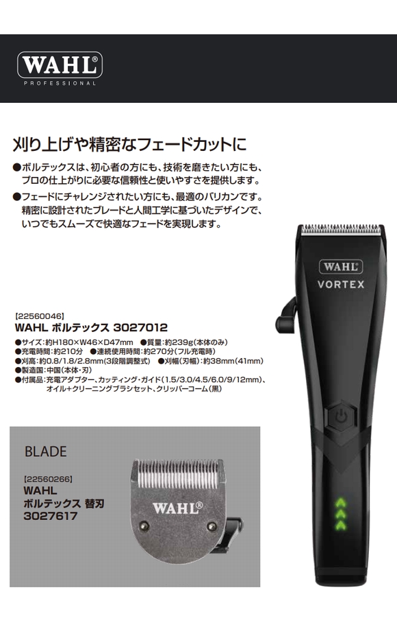 | 商品名 | WAHL ウォール ボルテックス VORTEX 3027012 JAN: 0043917028279 |