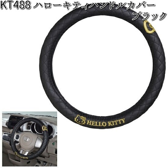 ●セイワ KT488 ハローキティ ハンドルカバー ブラック KT-488