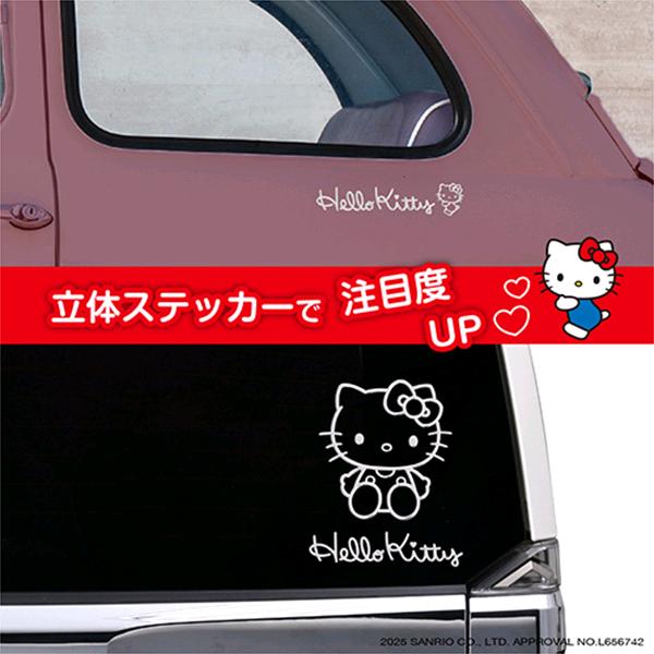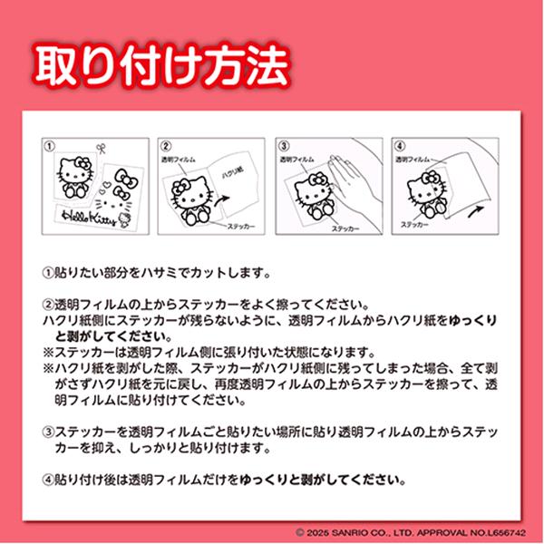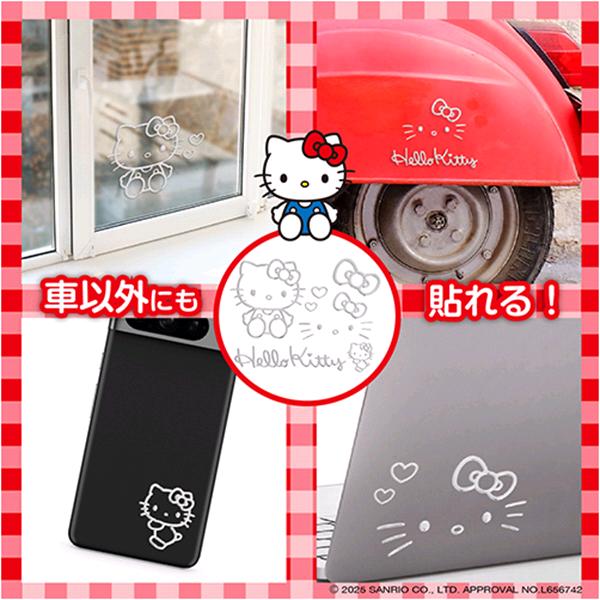 ●クルマのボディやバイク、ヘルメット、窓、スマートフォン、パソコンなど、お好きなところに貼って楽しむハローキティのステッカーです。
