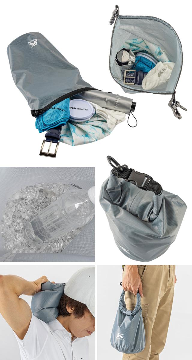 セット内容:マルチバッグ、ゴムメッシュベルト、クールタオル、折り畳み傘、メッシュソックス、氷嚢