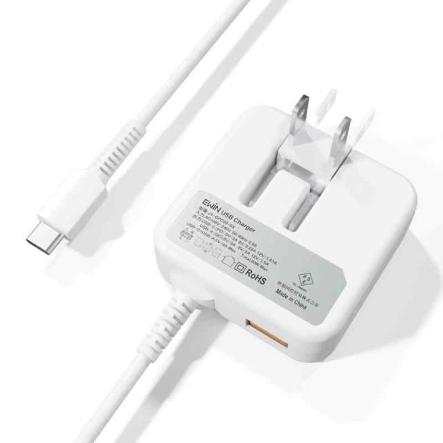 Ewin USB充電器 Type-C 20W 急速充電 USB タイプc 急速充電器 Type-Cケーブル一体型 PD対応 Smart IC搭載 ACアダプター 1.5mケーブル 180°折りたたみ式プラグ PSE認証済正規品 iPhone & Android & iOS &ゲーム機など対応