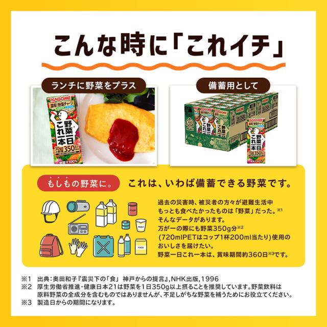 KAGOME 野菜一日 これ一本 紙パック 野菜ジュース 30品目 野菜 野菜汁 100% 食物繊維 カリウム カルシウム ビタミンA リコピン