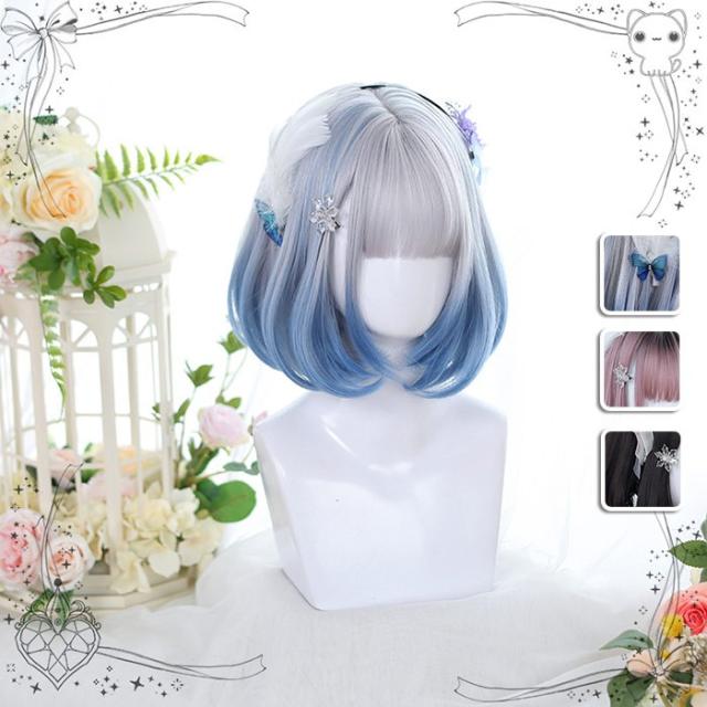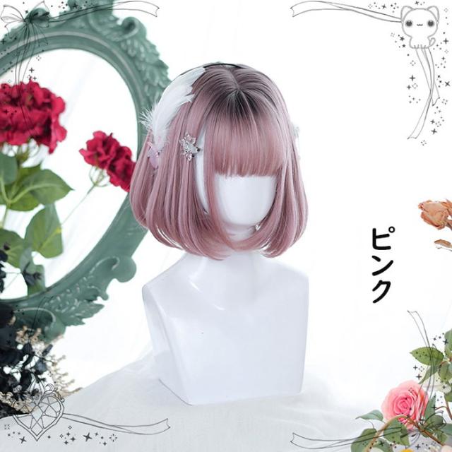 ウィッグ フルウィッグ 短い髪 前髪あり ハロウィン 原宿風 かつら 自然 仮装 大人用 普段使い 文化祭 イベント 学園祭 演劇 舞台 学芸会 ピンク ブラック dp007m6m6m5