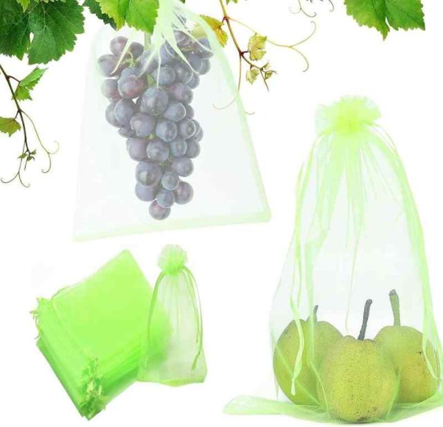 MUYYIKA 果物袋 保護ネット 防虫 保護バッグ 果実袋 オーガンジー生地 通気性 メッシュ 鳥よけネット 光通過 耐久性 自然成長 鳥よけ 虫よけ カラス対策 害虫鳥避け 園芸工具 ロープ付き 栽培用 農業用 巾着袋 50枚セット (10X15CM, グリーン)