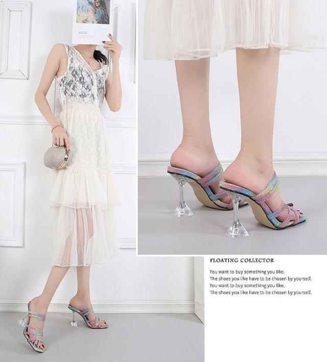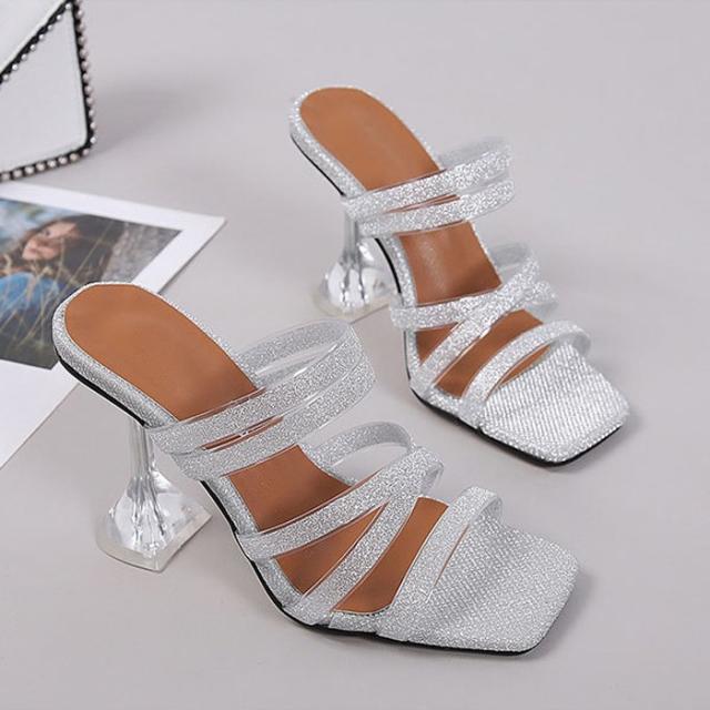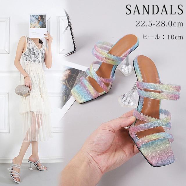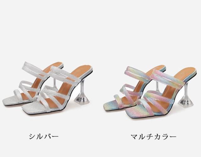 サンダル ミュール レディース キラキラ 痛くない 脱げない 大きいサイズ スクエアトゥ 靴 美脚 ハイヒール ピンヒール ヒール10cm ハイヒール ミュール サンダル レディース 大きいサイズ 靴 美脚 オープントゥ シルバー マルチカラー