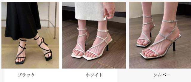 ストラップサンダル レディース ピンヒール 脱げない 痛くない 歩きやすい アンクルストラップ かかと付き カジュアル きれいめ おしゃれ 春 夏 スクエアトゥ 細ストラップ コードストラップ ナローストラップ アンクルストラップ ブラック 黒 シルバー ホワイト ja213zbzbm5