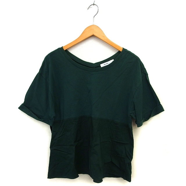 【中古】ニコアンド Niko and.. ボートネック カットソー ロールアップ 切替 コットン 綿 五分袖 L 緑 グリーン /NT17