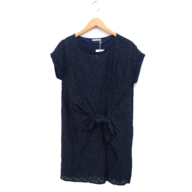 【中古】未使用品 オペークドットクリップ OPAQUE.CLIP タグ付き 前結び ワンピース 切替 レース 半袖 ひざ丈 38 M