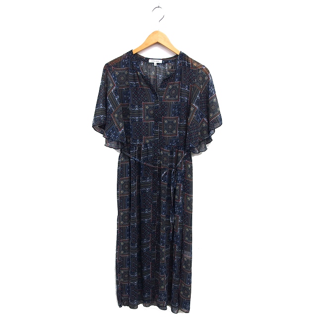 【中古】グローバルワーク GLOBAL WORK シアー シャツワンピース フレア ロング リボンバンダナ柄 五分袖 M 紺