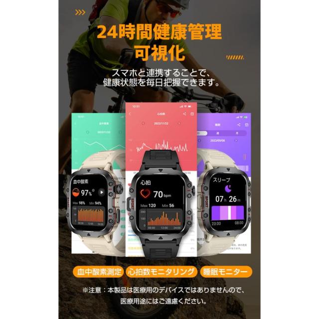 スマートウォッチ 軍用規格 健康管理 Bluetooth 通話機能 IP68防水 着信通知 メンズ 腕時計 血中酸素 心拍数 歩数計 iPhone Android
