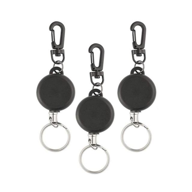 リールキーホルダー カラビナ付 リールストラップ 伸縮自在 紛失防止 キーホルダー ブラック 3個セット