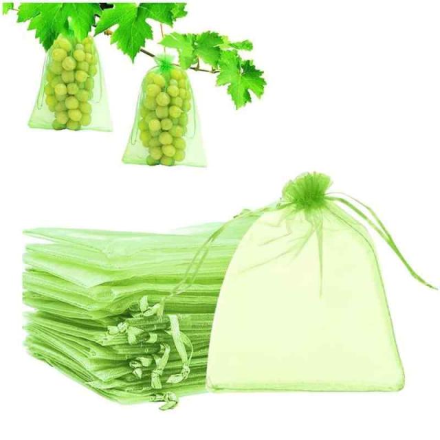 GYWHOOFT 50枚 果物袋 、15*20CM果物袋 保護ネット 防虫ネット通気性 メッシュ 鳥よけネット 鳩よけネット 巾着袋 防虫 防鳥 保護ネット 果物 網 頑丈 袋 ぶどう 桃 メッシュバッグ フルーツプロテクターバッグ