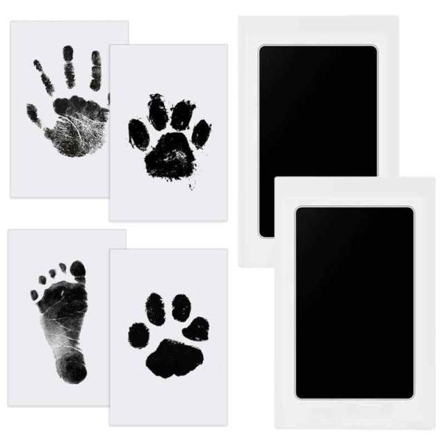 赤ちゃん 手形 足形 キット2セット 赤ちゃん 手形 汚れない 汚れ防止インクベビーフォトフレームギフト誕生日プレゼント新生児1歳誕生日成長記録猫犬手形足形記念品ブラック (2)