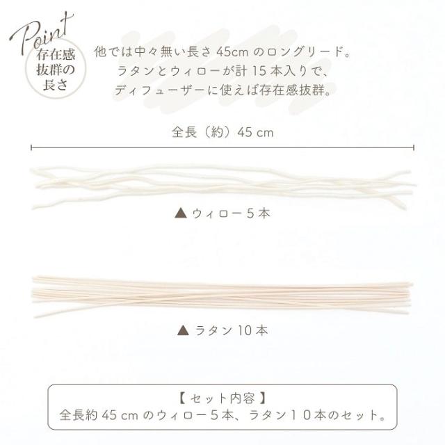 交換用 リードスティック shesay シセイ ウィローとラタンのリードセット 全長約45cm 15本入 自然素材 柳 籐 リフィル パーツ おしゃれ インテリア