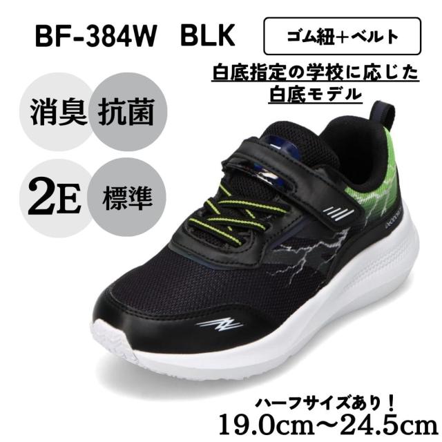 ランニングシューズ キッズ 消臭 抗菌 快適 軽量 軽い 白底 ゴム紐 ベルト 面ファスナー 着脱簡単 脱ぎ履きらくらく 通学 通園 通勤 通学 運動 体育 普段使い 子供靴 ローカット シューズ 靴 ブラック バイオフィッター bio fitter BF-384W