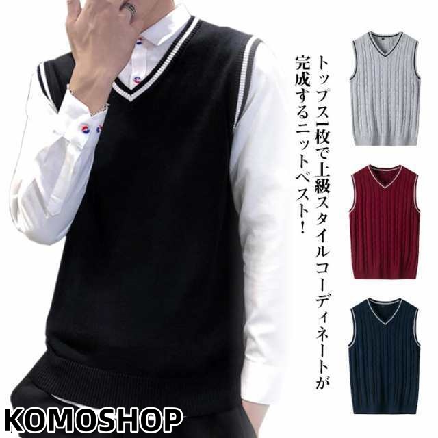 ニットベスト ニットセーター Vネック ノースリーブ リブニット ベスト 大きいサイズ セーター メンズ ニットトップス 色切り替え インナー 重ね着 レイヤード カジュアル コーディネート 無地 定番 普段着 ビジネス 通勤 通学 春新作 送料無料