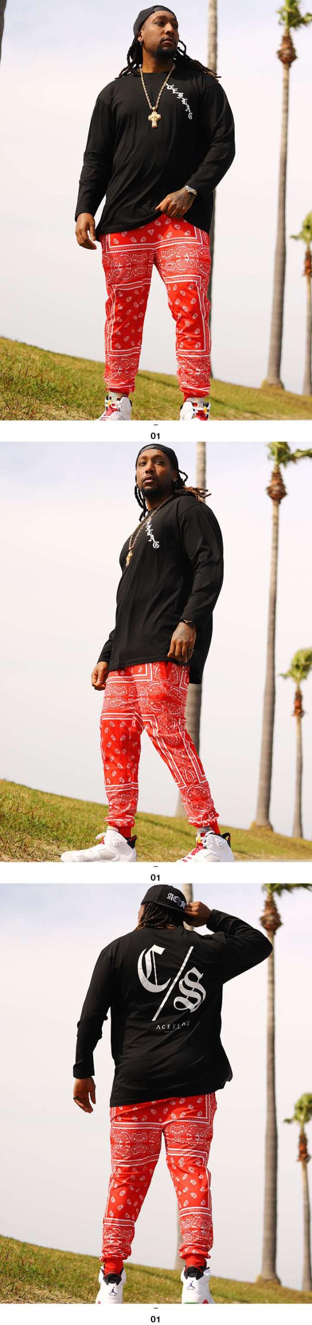 送料無料 L-2XL おしゃれ かっこいい メンズセットアップ メンズ上下セット いかつい ペイズリー柄 赤いバンダナ 赤バンダナ 赤ペイズリー ジョガーパンツ イージーパンツ ダンス