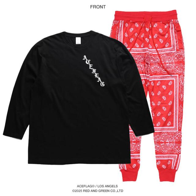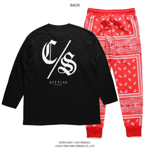 【48%OFF】ACE FLAG 上下セット 長袖 ブランド CSロゴ Tシャツ ロンT ロングパンツ メンズ 春秋冬用 黒 大きいサイズ エースフラッグ セットアップ ジャージ 長ズボン トラックパンツ 総柄 ビッグシルエット b系 ヒップホップ ファッション ストリート系 AF-SE-LT-154