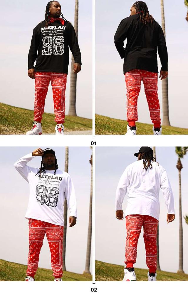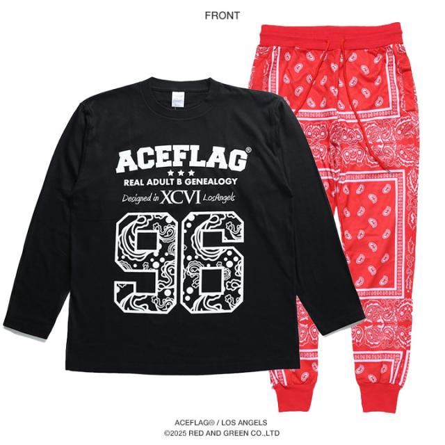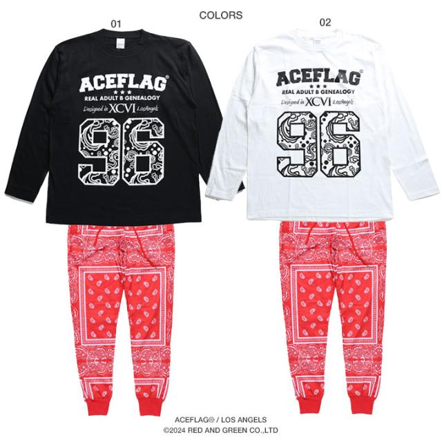 上下セット【48%OFF】ACE FLAG 長袖 ブランド Tシャツ ロンT ロングパンツ メンズ 春秋冬用 白 黒 大きいサイズ エースフラッグ セットアップ ジャージ 96 ペイズリー柄 スポーツ ビッグシルエット b系 ヒップホップ ファッション ストリート系 ハイ AF-SE-LT-166