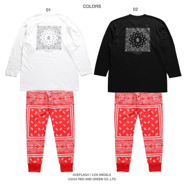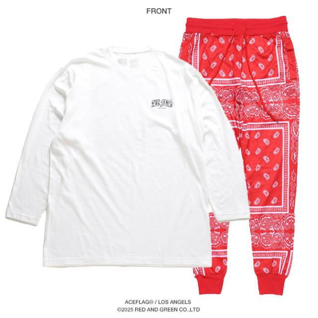 【48%OFF】ACE FLAG 上下セット 長袖 ブランド Tシャツ ロンT ロングパンツ メンズ 春秋冬用 白 黒 大きいサイズ エースフラッグ セットアップ ジャージ トラックパンツ おしゃれ スペード ビッグシルエット b系 ヒップホップ ファッション ストリート系 AF-SE-LT-162