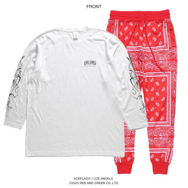 【48%OFF】ACE FLAG 上下セット 長袖 ブランド Tシャツ ロンT ロングパンツ メンズ 春秋冬用 白 黒 大きいサイズ エースフラッグ セットアップ ジャージ Pinstripe ピンストライプ 袖ロゴ ビッグシルエット b系 ヒップホップ ファッション ストリート系 AF-SE-LT-164