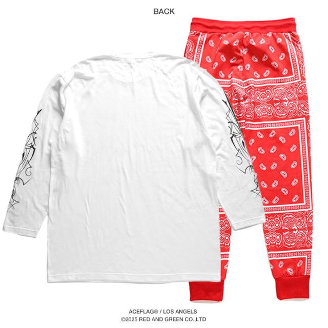 ロンTの両袖にチカーノカルチャーを代表する『Pinstripe』、トラックパンツに『ペイズリー柄』をドロップした上下セット。