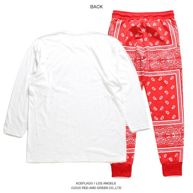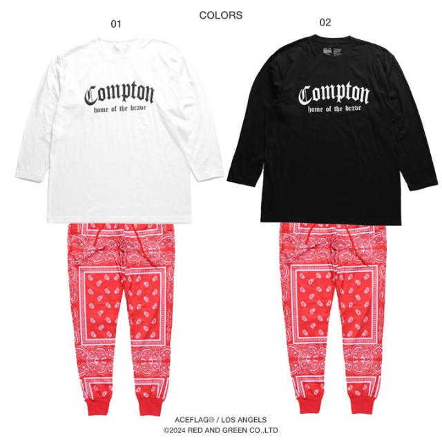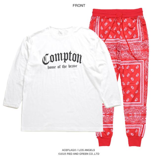 【48%OFF】ACE FLAG 上下セット 長袖 ブランド Tシャツ ロンT ロングパンツ メンズ 春秋冬用 白 黒 大きいサイズ エースフラッグ セットアップ ジャージ おしゃれ Compton コンプトン ビッグシルエット b系 ヒップホップ ファッション ストリート系 ハイ AF-SE-LT-163