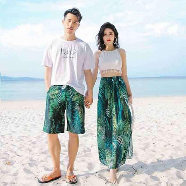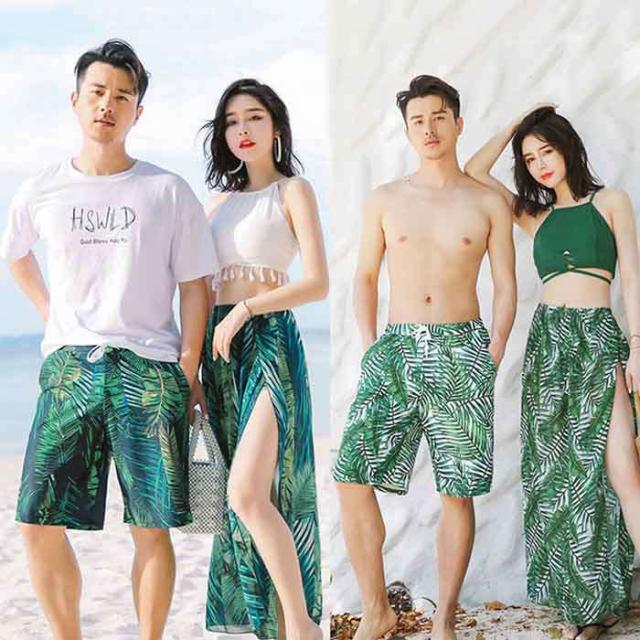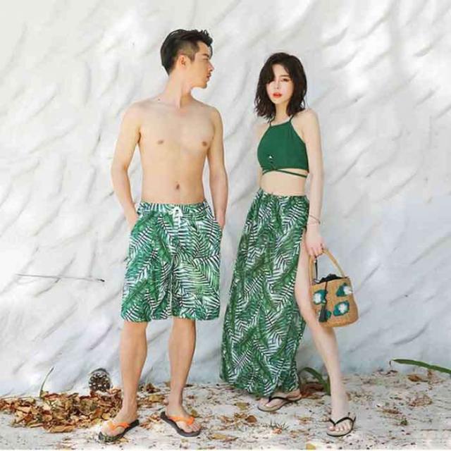 商品名:水着ペア カップル水着 レディース メンズ ペアルック カップル値段 花柄 パッド付き メンズ水着 男性用 ビーチパンツ サーフパンツ パレオ風 みずぎ 男女 温泉 ハネムーン 蜜月 海外旅行 新婚旅行 夏 サマー 送料無料