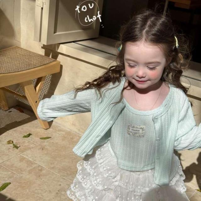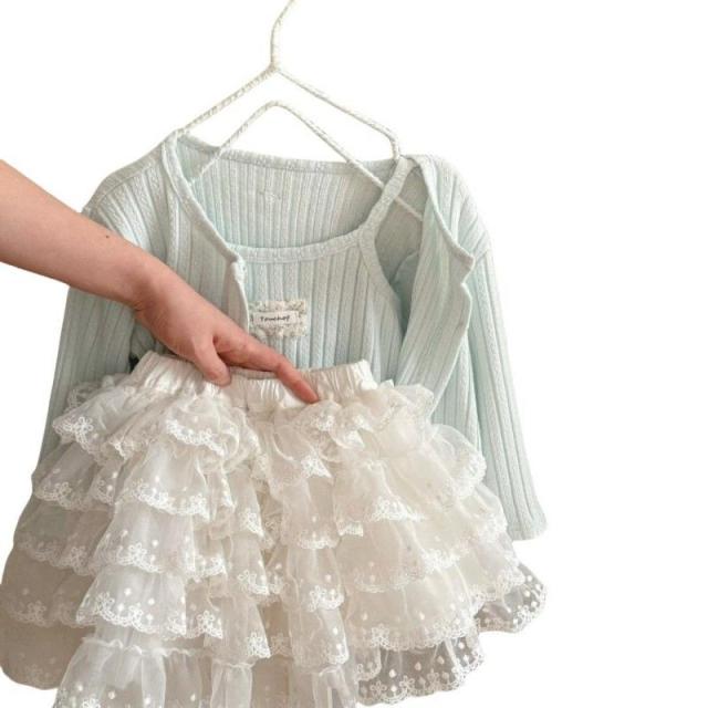 女の子 キッズ服 子供服 ニット キャミソール スカート 水色 3点セット 甘い系 春夏新作 可愛い 新品 韓国風 1-6歳