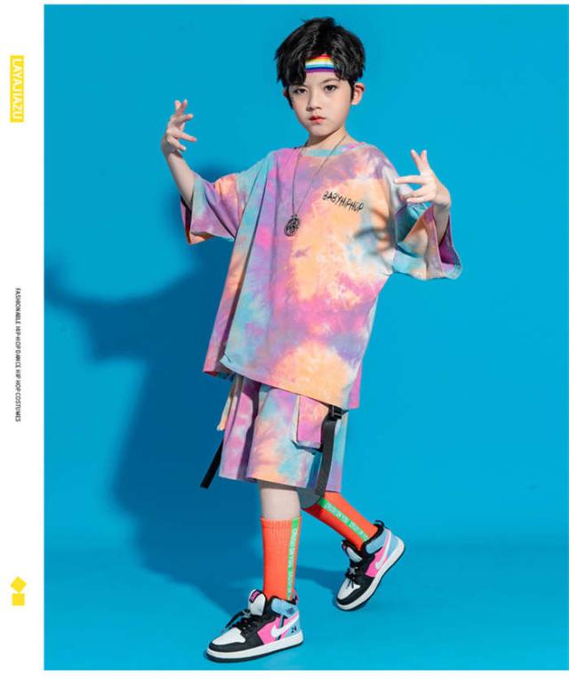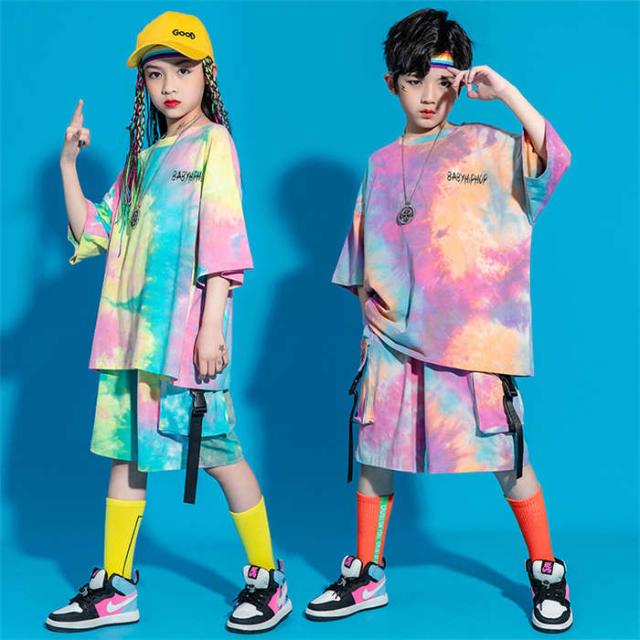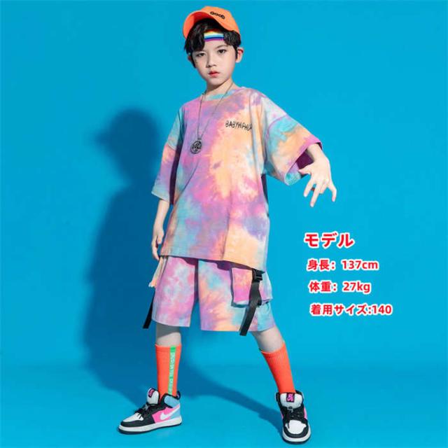 商品名:ダンス服 セットアップ 女の子 男の子 ダンス衣装 ヒップホップ キッズ 半袖Tシャツ ショートパンツ ストリートダンス タイダイ染 男女兼用 子供服 ダンスウェア 演出服 舞台衣装 ダンス衣装 イベント衣装 ステージ衣装 踊り 2点セット 夏 ガールズ ボーイズ ゆったり ファッション ジュニア プリント ステージ 110 120 130 140 150 160 170