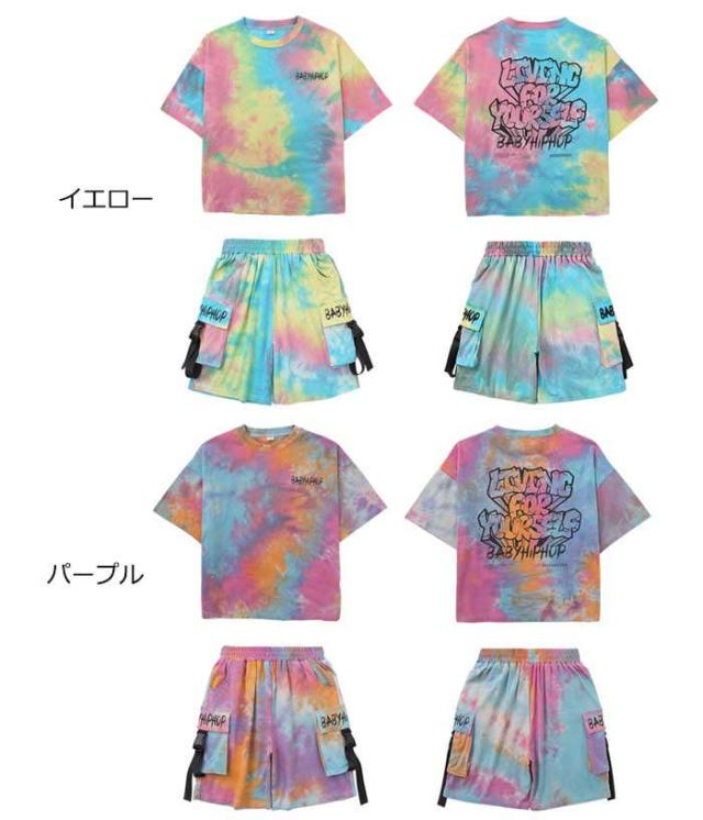 ダンス服 セットアップ 女の子 男の子 ダンス衣装 ヒップホップ キッズ 半袖Tシャツ ショートパンツ ストリートダンス タイダイ染