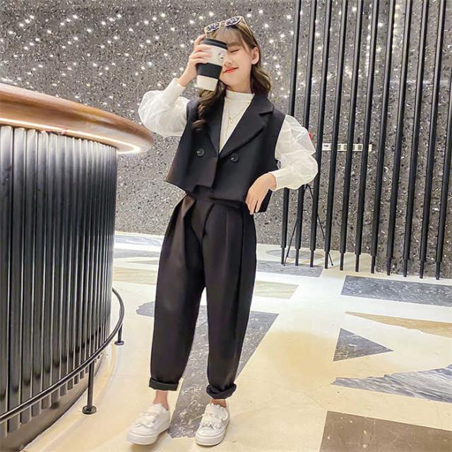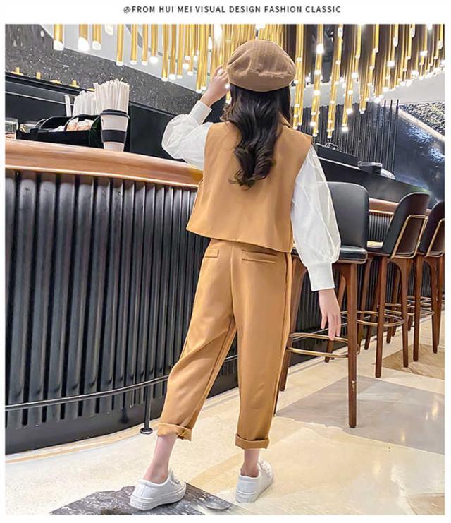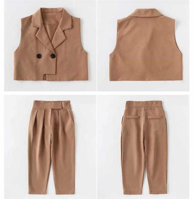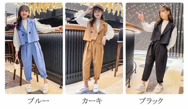 商品名:韓国子供服 女の子 スーツ セットアップ ベスト パンツ フォーマル 無地 2点セット 上下セット 発表会 入学式 卒業式 七五三 イベント 誕生日 記念日 学生 お洒落 お祝い キッズファッション お呼ばれ 春 秋 しゃれ カジュアル キッズ ガールズ 120cm 130cm 140cm 150cm 160cm 170cm