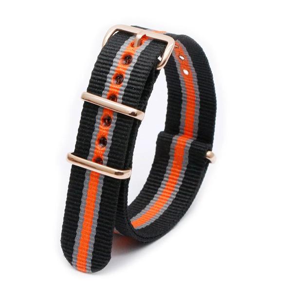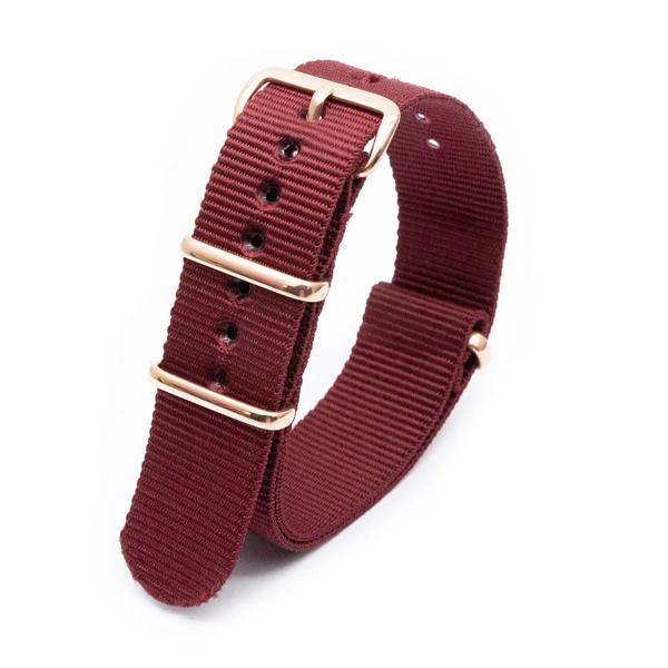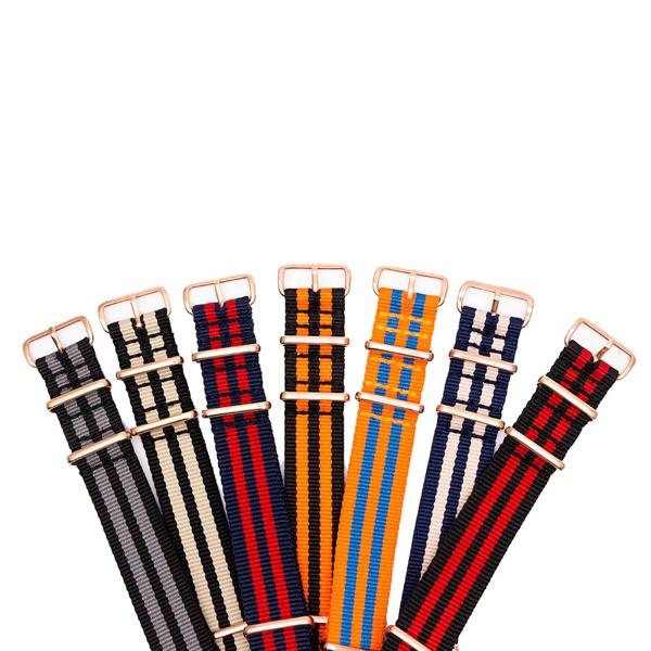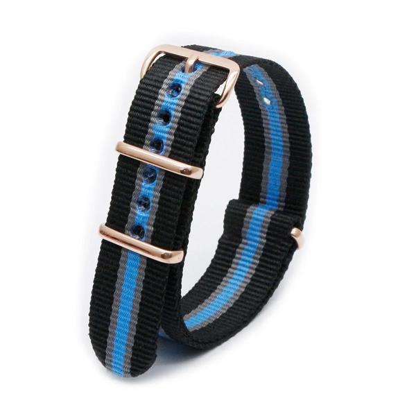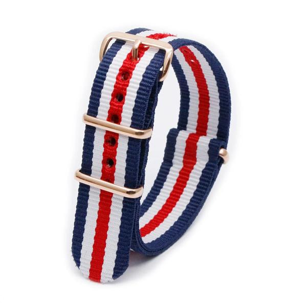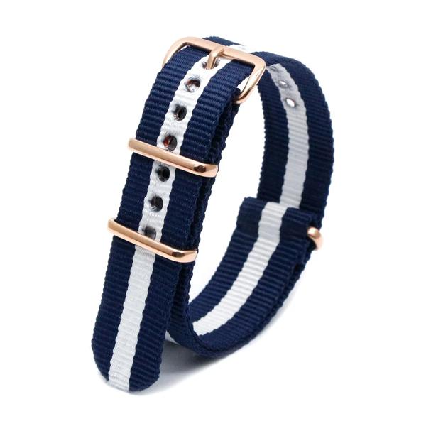 男性と女性のためのピンクゴールドのバックル付きナイロンウォッチストラップ,18mm,20mm,22mm,24mm