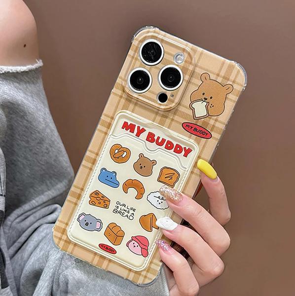 かわいい漫画のパンベア電話ケース,落下防止カバー,ウォレットバッグ,カードホルダー,ソフト,iPhone 11,12,13,14,15 pro max